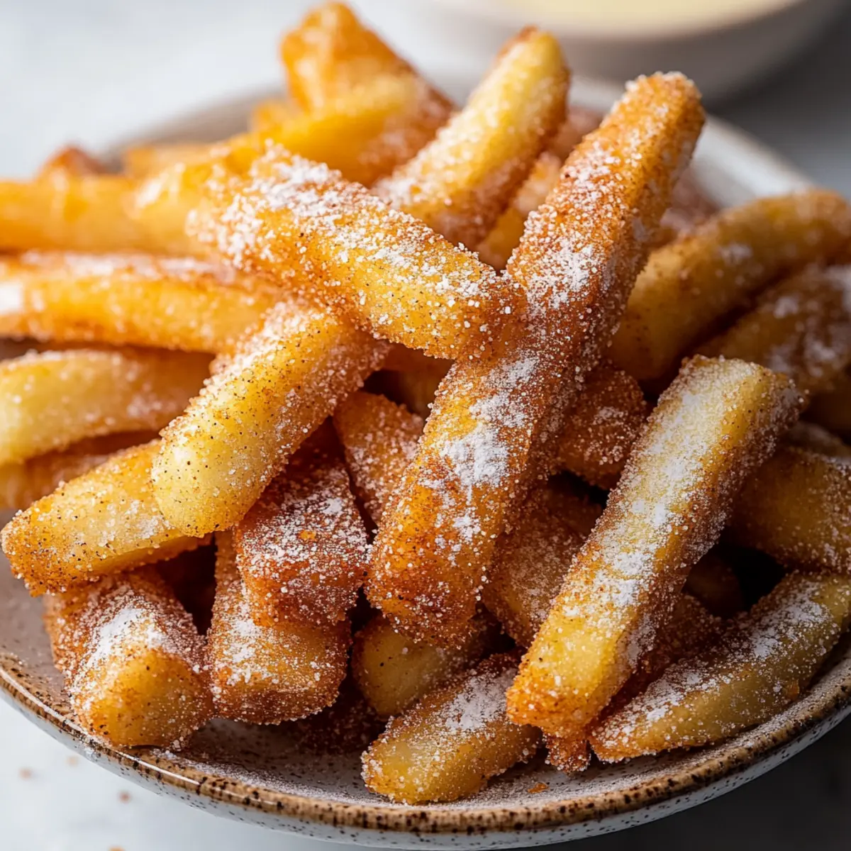 Schlagsahne: Fluffige Schlagsahne ergänzt den süßen Geschmack der Apfel-Pommes und macht jedes Biss zu einem wahrhaft luxuriösen Erlebnis.