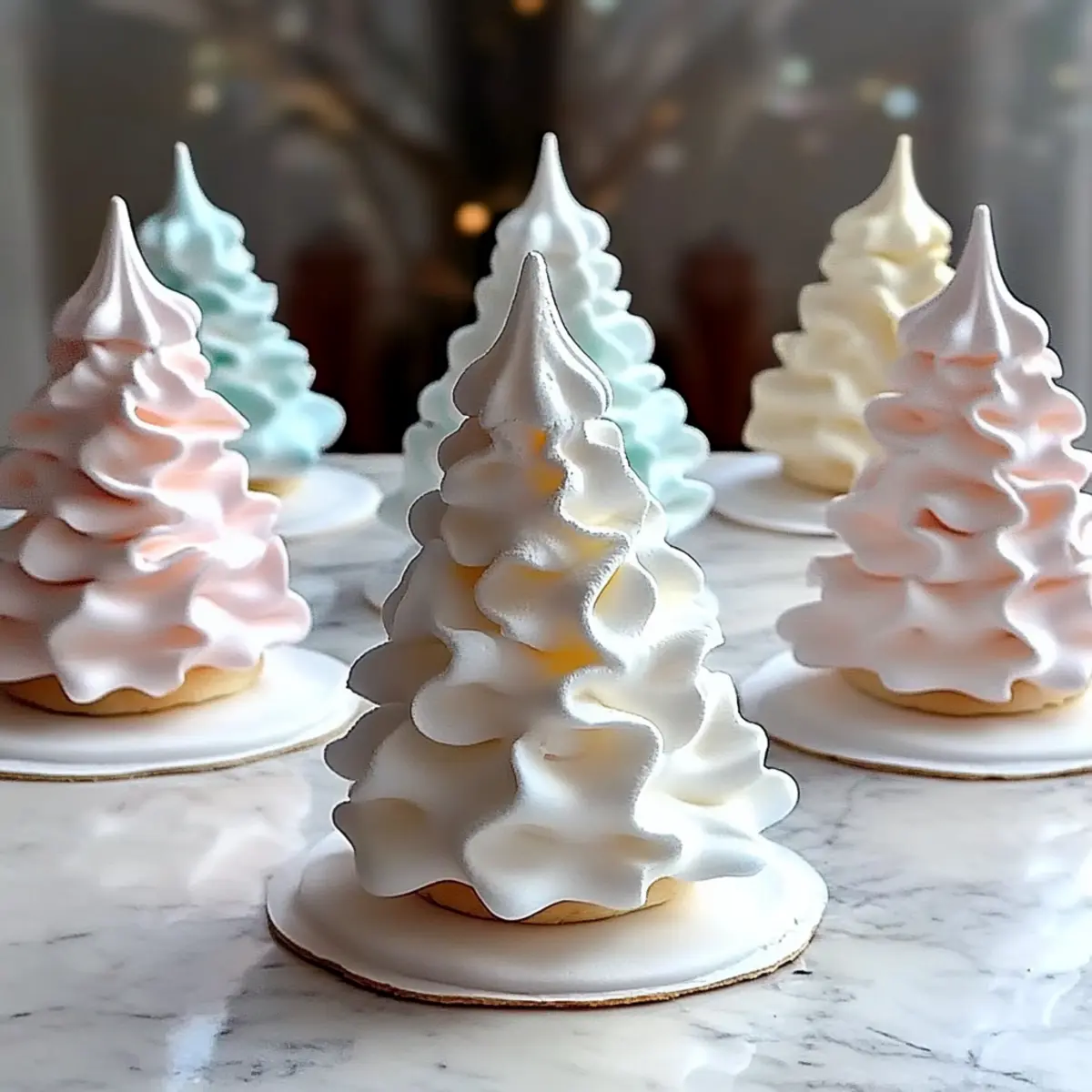 Einzigartige Optik: Diese Baummeringue-Kekse sind nicht nur lecker, sondern auch ein echter Blickfang auf jedem festlichen Tisch.