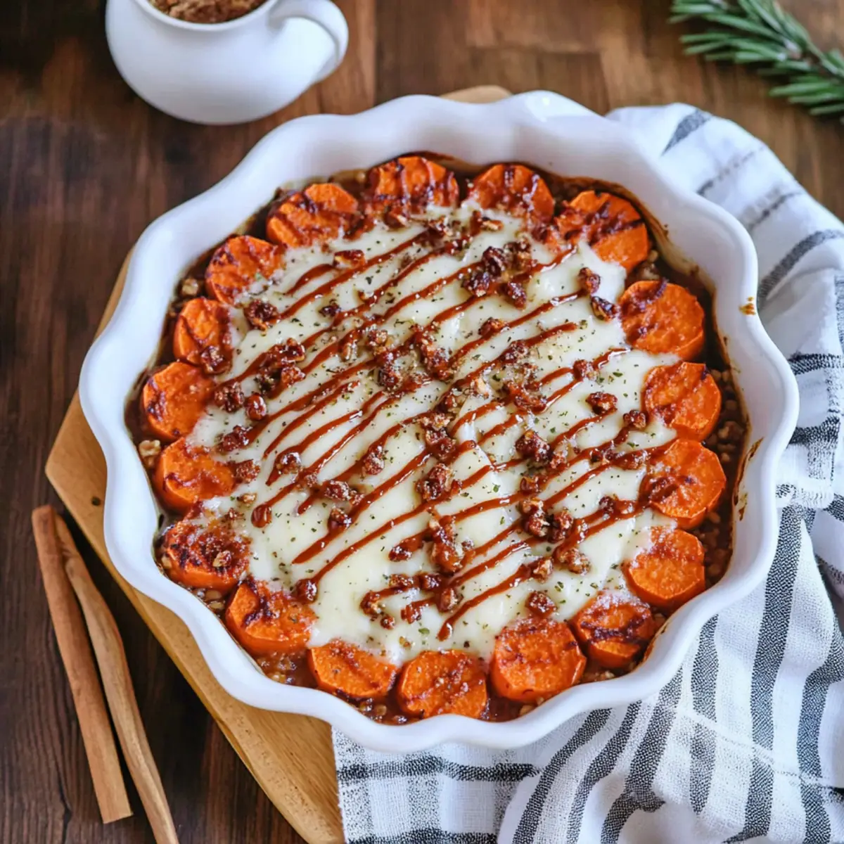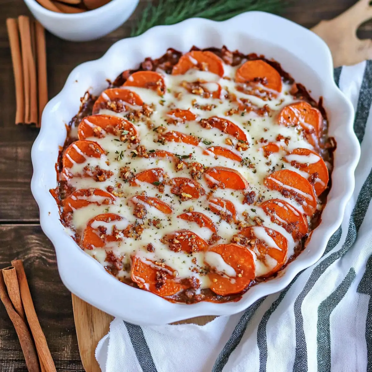 Jeder Biss dieser köstlichen Beilage ist ein Fest für die Sinne: Das knusprige Topping aus gepufften Marshmallows trifft auf die zarte, cremige Textur darunter, während die aromatischen Gewürze wie Zimt und Muskatnuss für eine zusätzliche Geschmacksdimension sorgen. Ob zu Thanksgiving oder Weihnachtsfesten – diese süßen Köstlichkeiten sind nicht nur einfach zuzubereiten, sondern verleihen jedem festlichen Tisch einen Hauch von Eleganz und Genuss. Versprich dir selbst, dass du bei deinem nächsten Familienessen dieses Rezept ausprobierst und dich in die warmen Aromen des Herbstes entführen lässt!