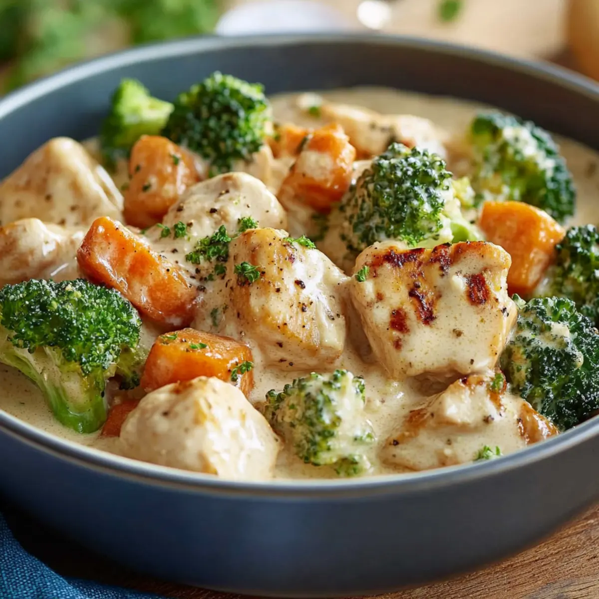 Stellen Sie sich vor: zartes, saftiges Hähnchen, in eine reichhaltige, cremige Sauce gehüllt, kombiniert mit süßen Süßkartoffeln und frischem Brokkoli. Das ist nicht nur ein Fest für die Geschmacksknospen, sondern auch eine nährstoffreiche und ausgewogene Mahlzeit, die sich perfekt für jedes Familienessen eignet.