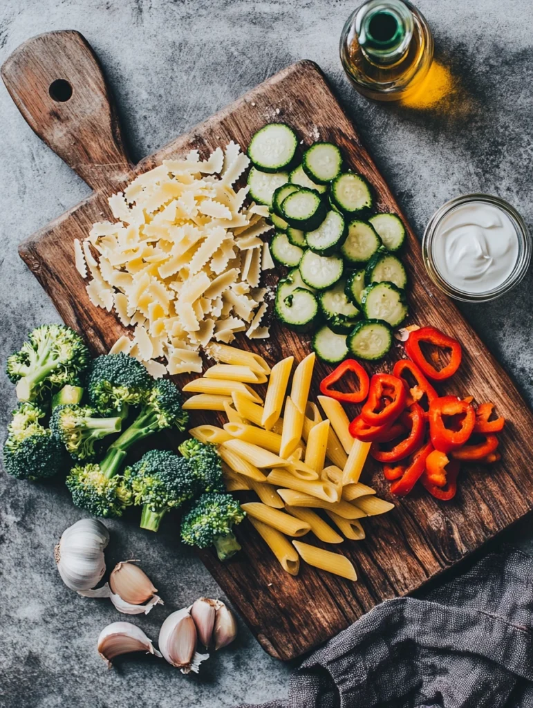 - 300 g Nudeln (z. B. Penne, Fusilli oder Farfalle)