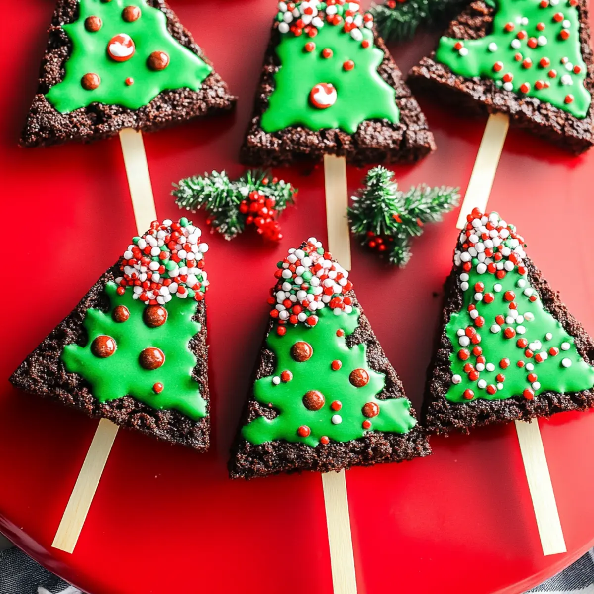 Optional: Fügen Sie kleine Sternchen oder Zuckerstangen hinzu, um Ihren Brownie-Bäumen einen besonderen Touch zu verleihen.