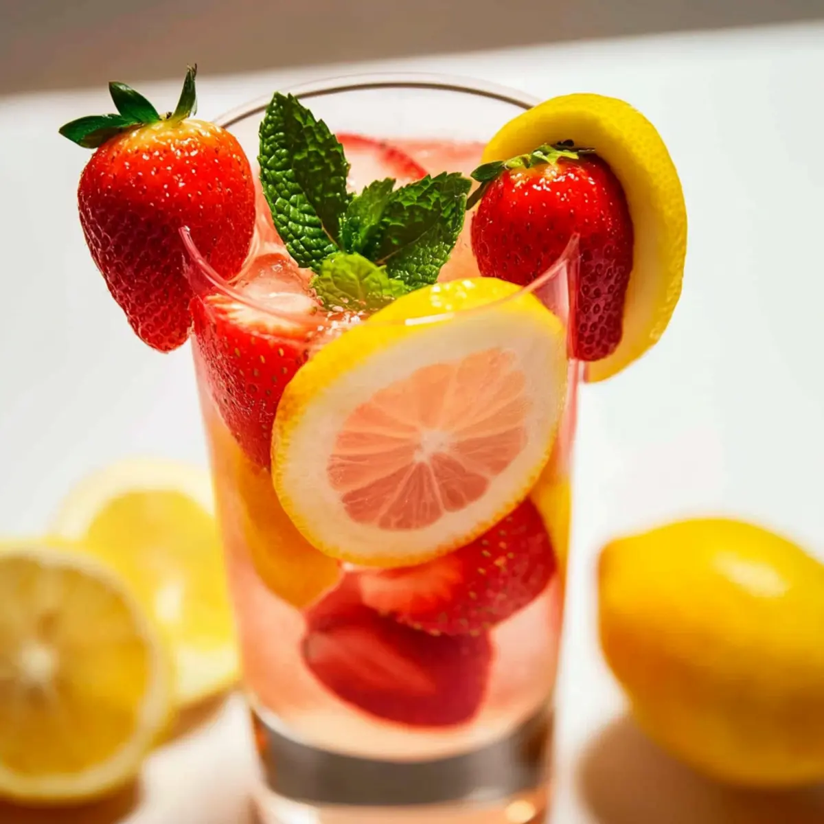 - Garnieren: Füge Minzblätter hinzu und garniere mit Zitronenscheiben und Erdbeeren.