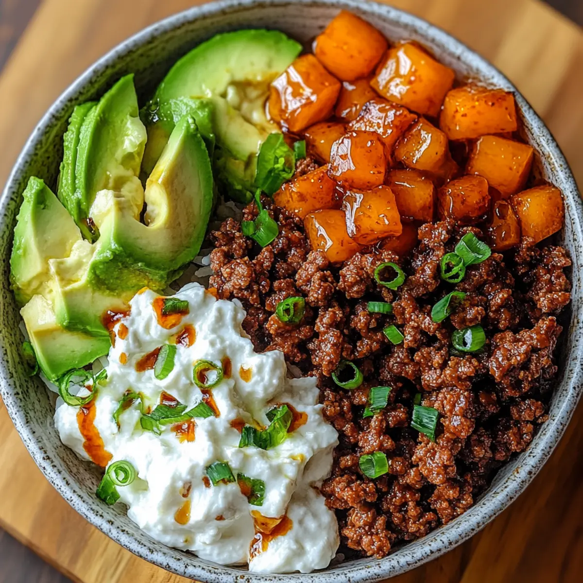 Entdecken Sie den neuesten kulinarischen Trend, der die Internetgemeinschaft im Sturm erobert hat: die „Ground Beef Hot Honey Bowl.“ Diese köstliche Schüssel vereint saftiges, perfekt gewürztes Rinderhackfleisch, das auf karamellisierten Süßkartoffeln serviert wird, und wird gekrönt von cremigem Quark und butterartigem Avocado. Ein Schuss scharfer Honig rundet das Ganze ab und verbindet die ausgewogene Süße mit würziger Schärfe, während sie gleichzeitig mit hochwertigem Protein aufwartet. Diese Schüssel ist nicht nur ein Blickfang, sondern auch die perfekte Lösung für Ihre Meal-Prep-Bedürfnisse – einfach zuzubereiten, vollgepackt mit Aromen und wunderschön angerichtet. Egal, ob Sie auf der Suche nach einem schnellen Abendessen sind oder die nächste Mahlzeit vorbereiten möchten, die „Ground Beef Hot Honey Bowl“ ist sicherlich der Hit bei Familie und Freunden.