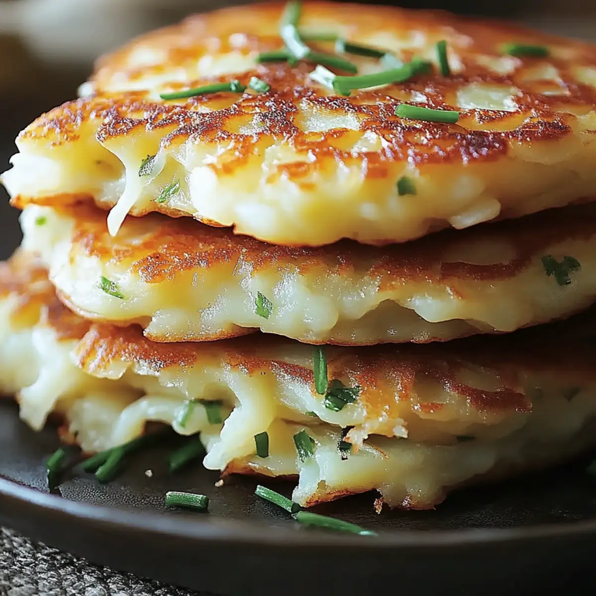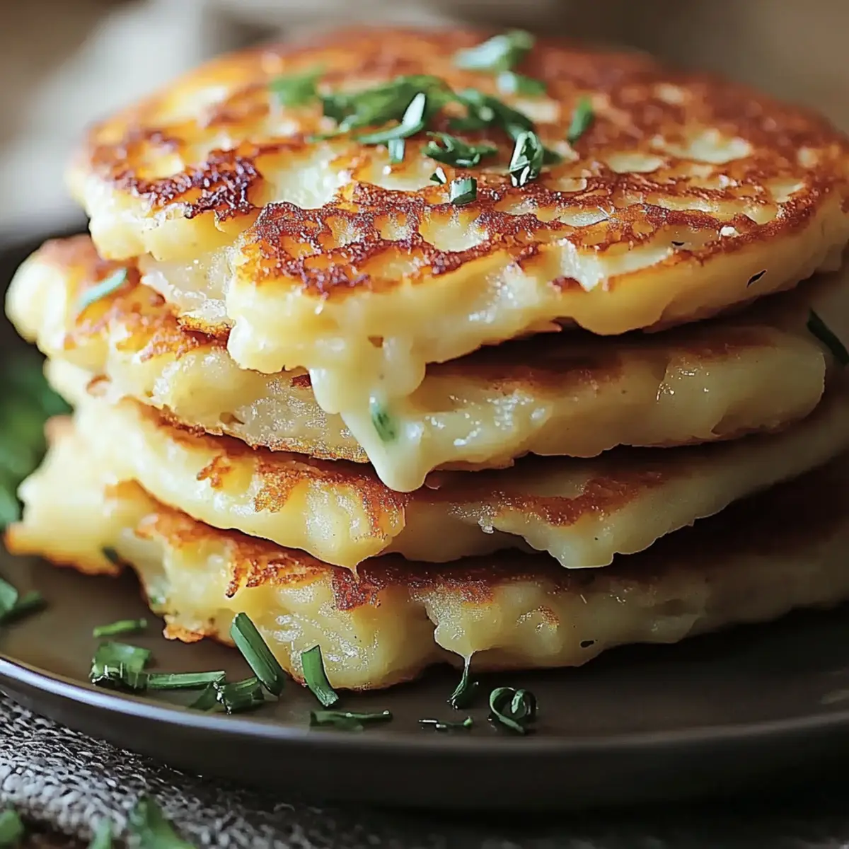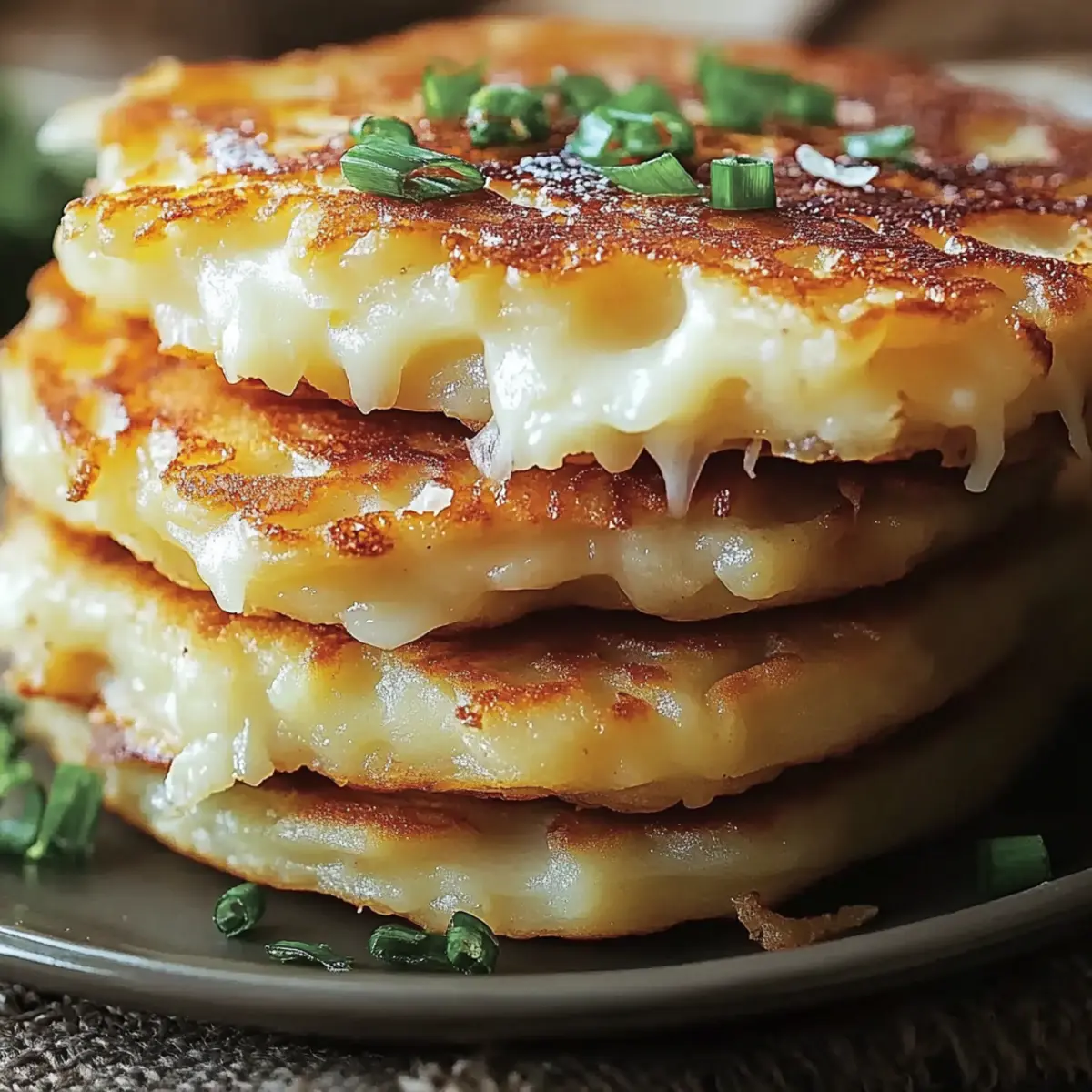Köstliche Kartoffel-Zwiebel-Pfannkuchen mit geschmolzenem Käse