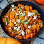 wie man Kürbis-Hackfleisch-Pfanne mit Feta serviert