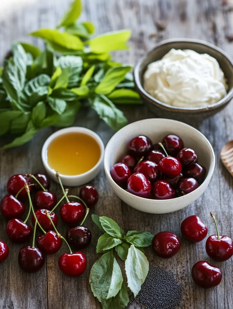 Zutaten fur Mascarpone-Mohn-Dessert mit Kirschen: