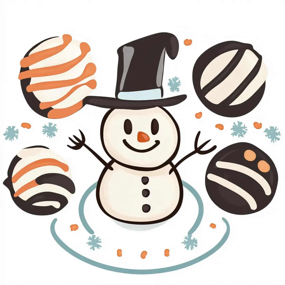 Genießen Sie die schmelzenden Schneemann-Kuchenbälle für eine festliche Atmosphäre bei jedem Winterevent!