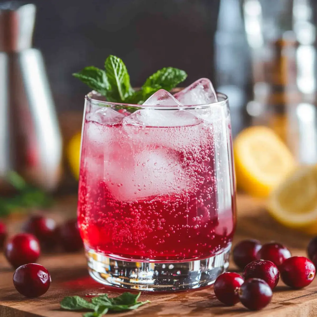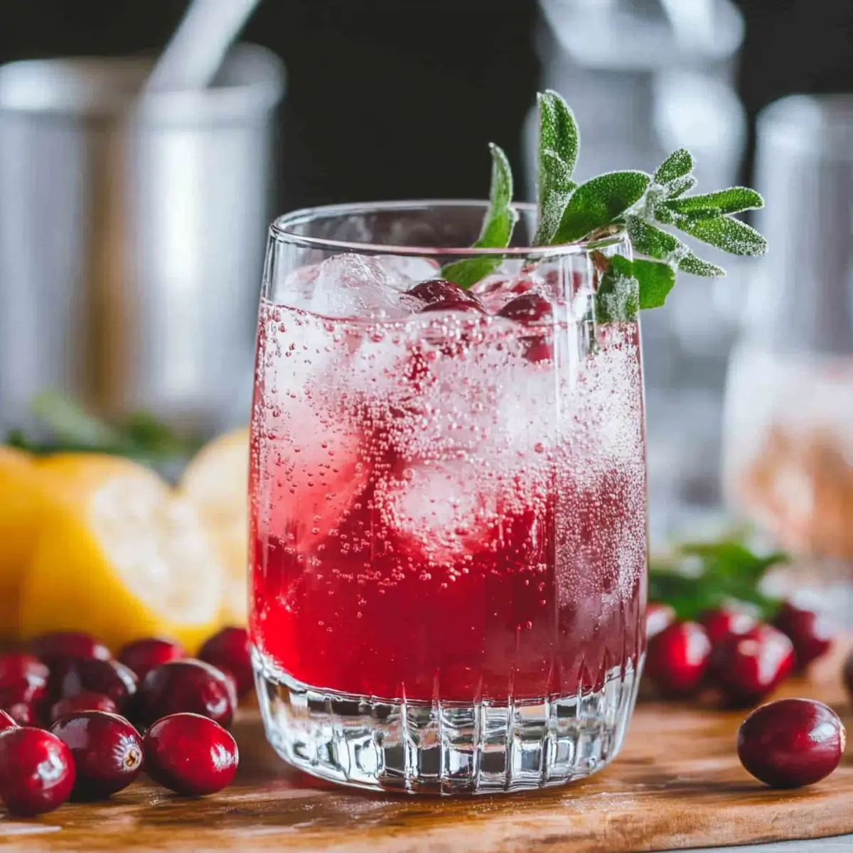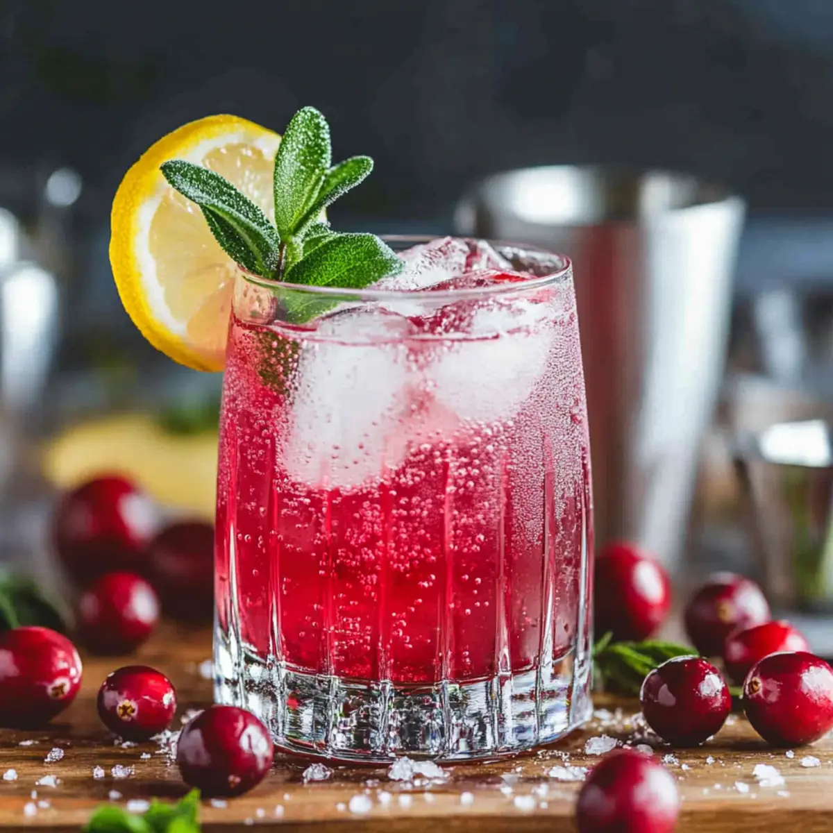 • Frische Cranberries – Dienen als Garnitur und verleihen dem Drink einen visuellen Charme sowie einen leicht säuerlichen Biss.