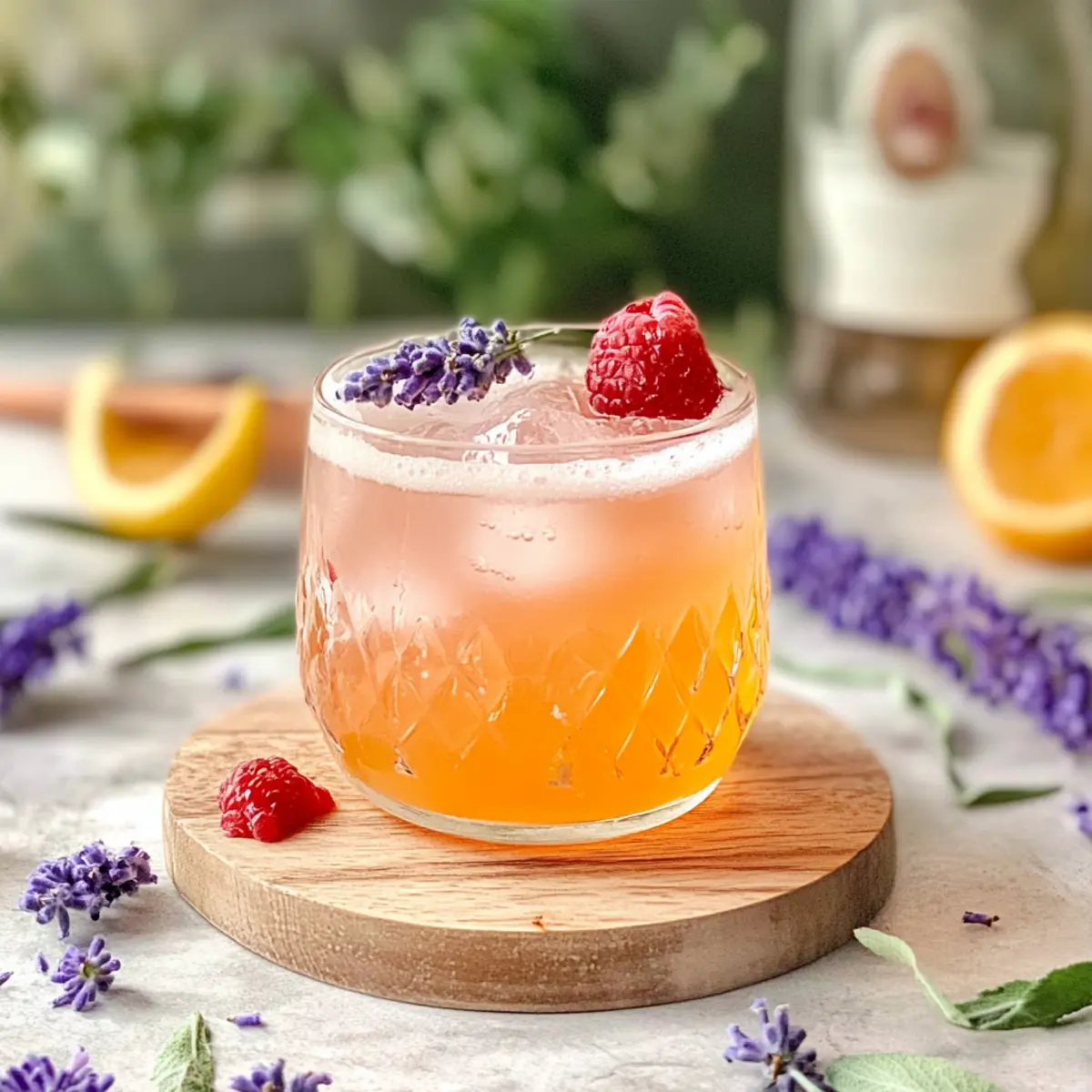 Optional: Garniere den Drink mit ein paar frischen Himbeeren und einem Zweig Lavendel für einen hübschen Akzent.