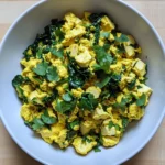 Ein einfach zuzubereitendes veganes Tofu-Rührei mit Spinat, das voller Geschmack ist und ideal für einen nahrhaften Start in den Tag.