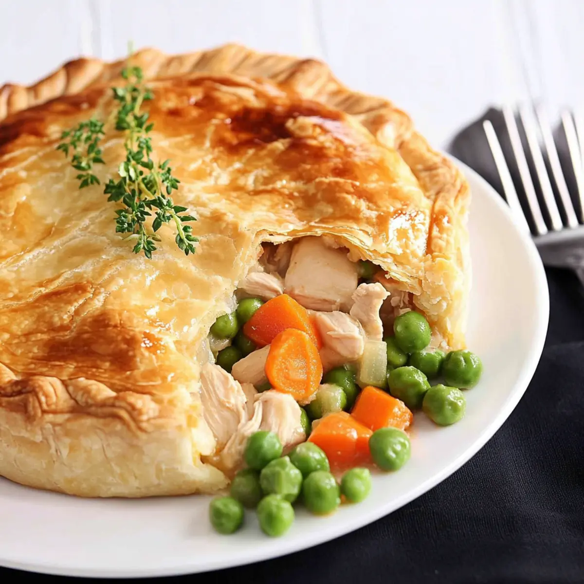- Serviervorschläge: Arrangieren Sie die Beilagen zusammen mit dem Chicken Pot Pie auf dem Teller und garnieren Sie diese, um die Präsentation zu verbessern.